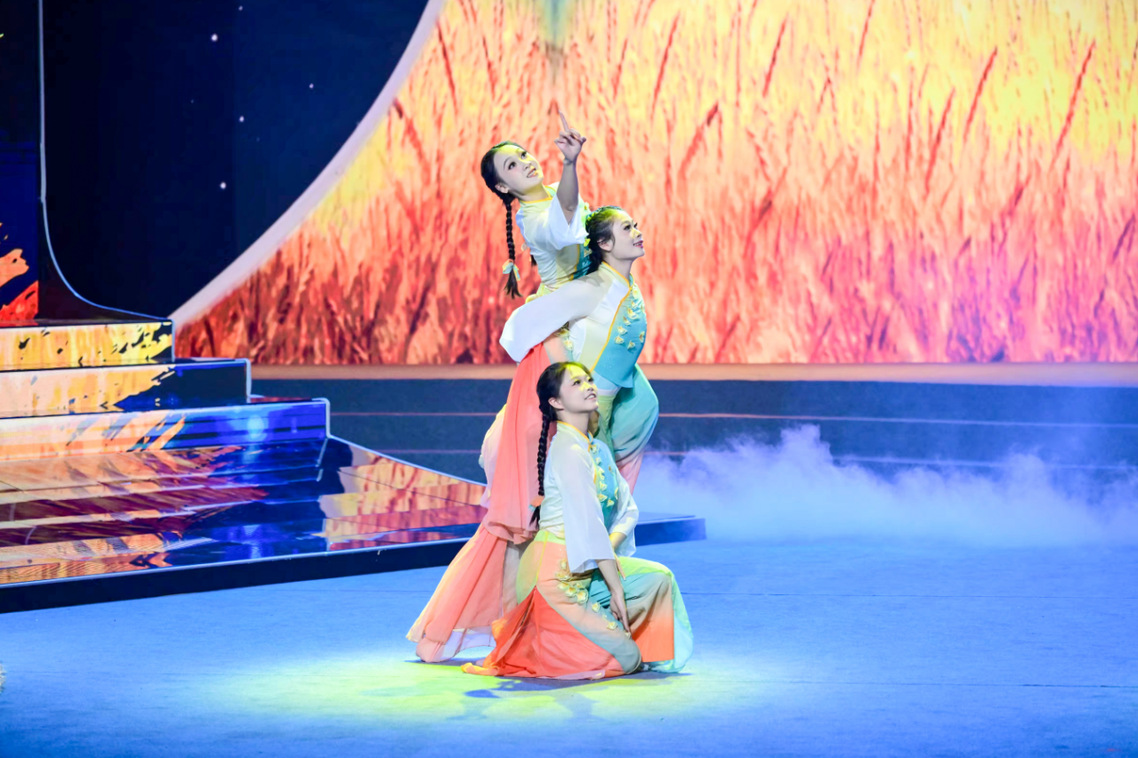 电影学生师生紧扣“三爱”主题,将专业教学与思政教育深度融合,历时两个月创编完成舞蹈《在希望的田野上》。节目以改革开放以来的农村巨变为主线,通过“播种—耕耘—收获”三段式结构,用当代舞融合闽南民间元素的艺术语汇,生动诠释闽山闽水间的奋斗故事,深情礼赞在党的领导下乡村振兴壮美画卷。