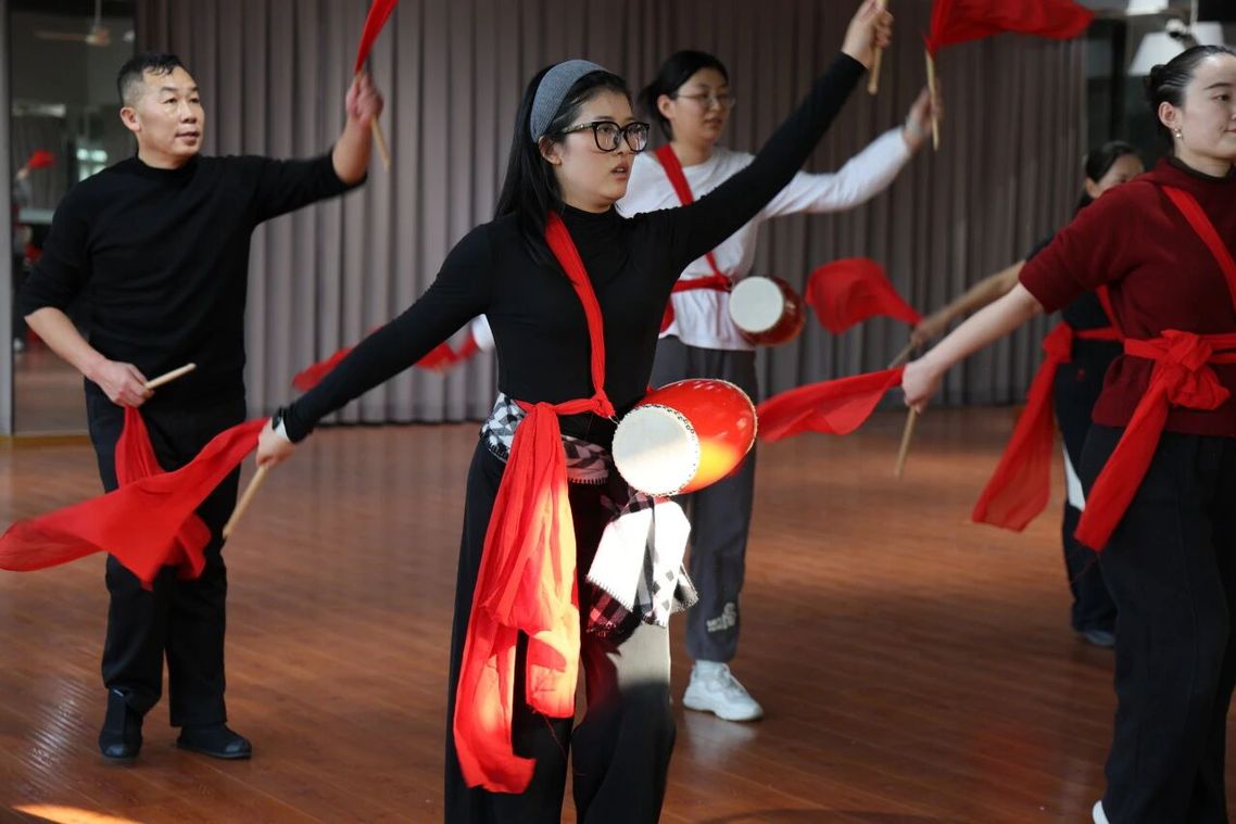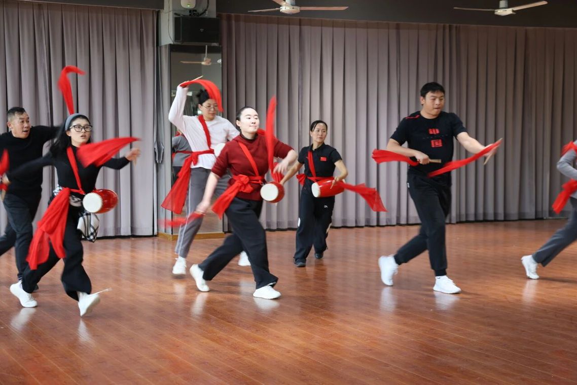 红绸飞舞,鼓点铿锵